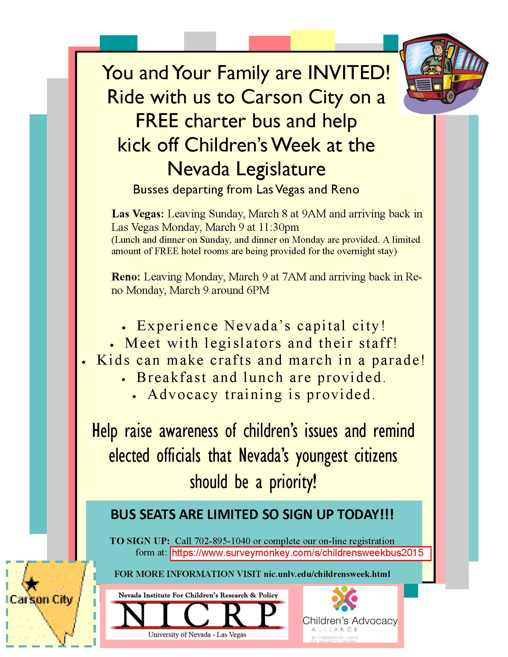 Ride the Bus FREE to Attend Children’s Week at the NV Legislature Leave a reply Click on Image to enlarge Share this: Click to share on X (Opens in new window) X Click to share on Facebook (Opens in new window) Facebook Like Loading...